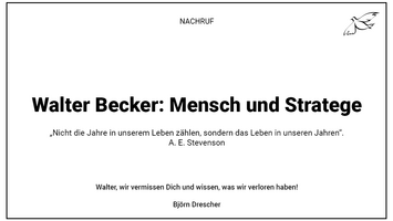 NACHRUF - Walter Becker: Mensch und Stratege